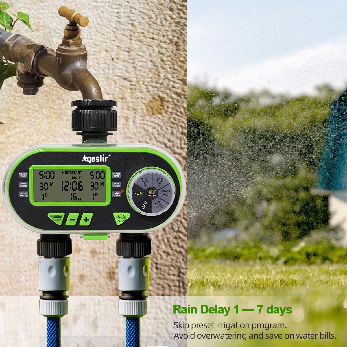 Aqualin Bewässerungscomputer mit 2 Ausgängen, Regenverzögerung, wasserdicht