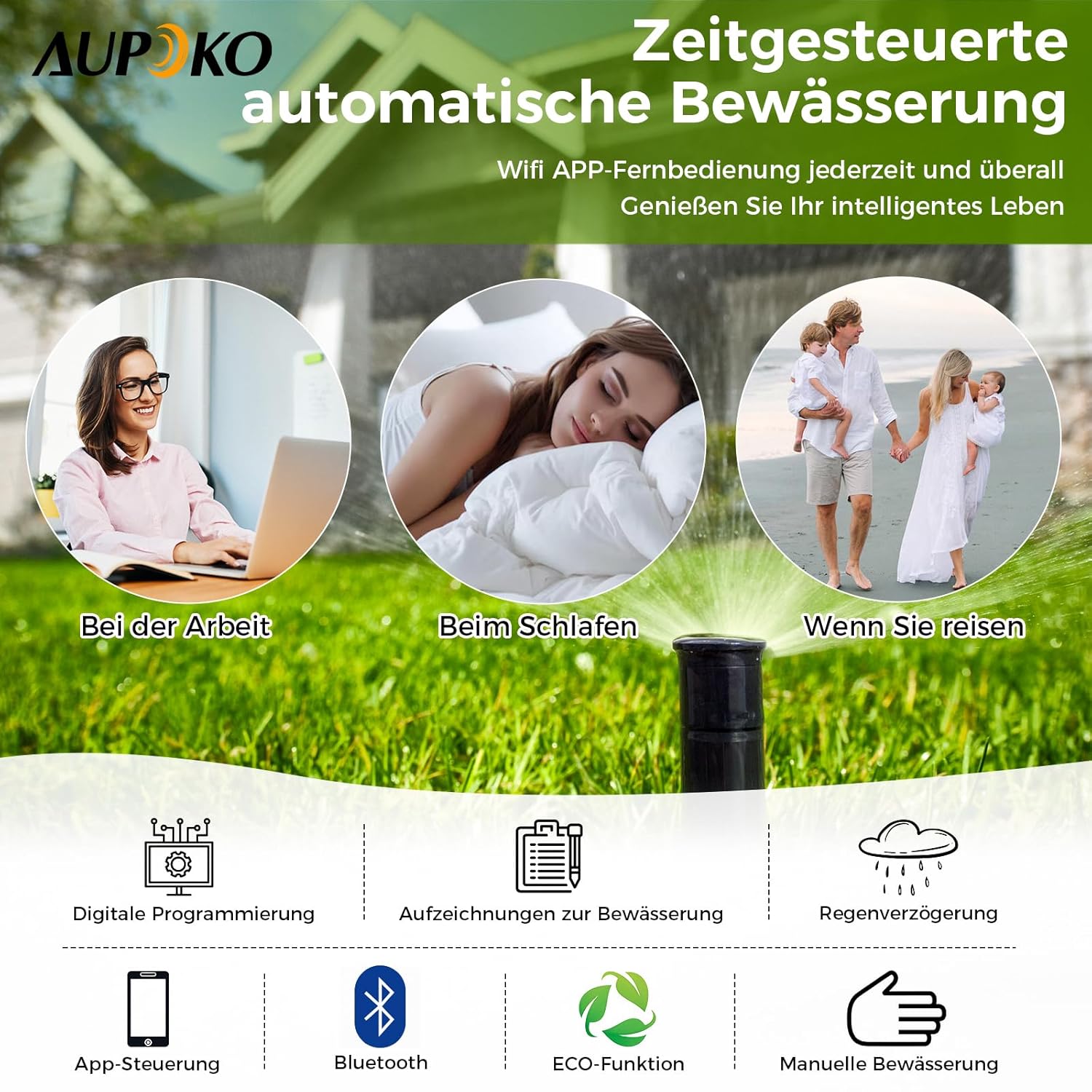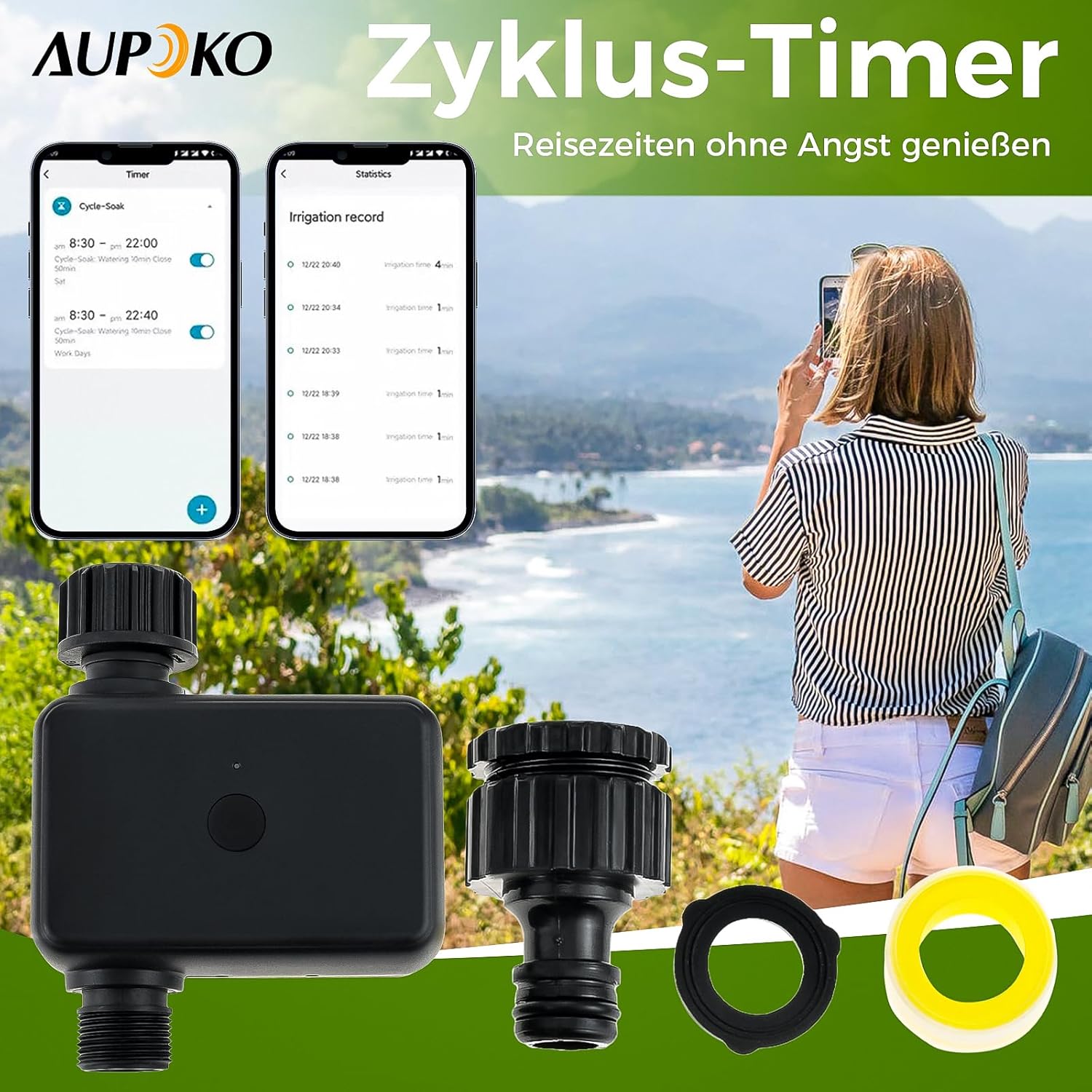 Aupoko Smart Watering Timer: Intelligente Bewässerung mit Bluetooth und App-Steuerung – Der Premium-Helfer für Ihren grünen Oase