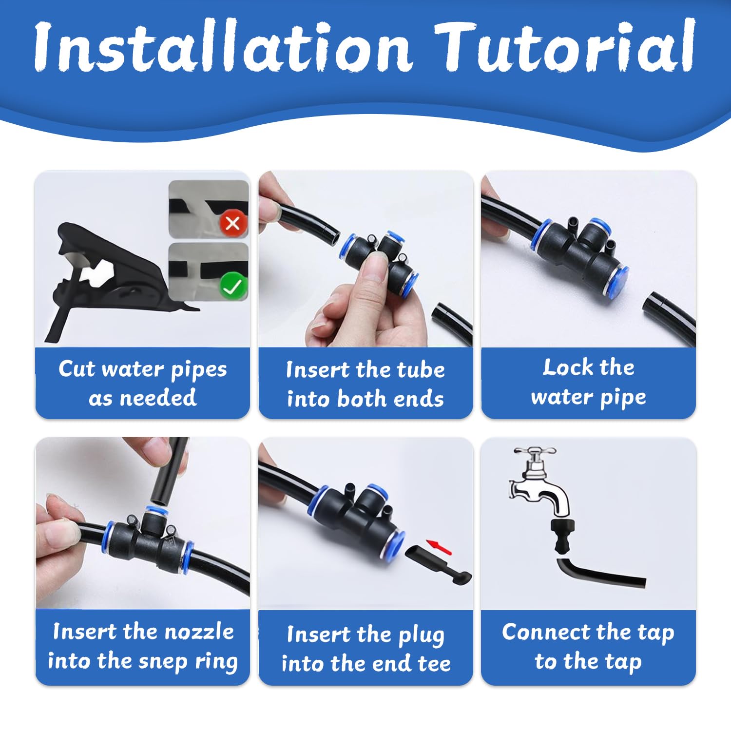 • 1 x 360°-Gebogenes Automatisches Gartensprinklersystem mit 5 m Schlauch und Quick-Connect-Fittings
