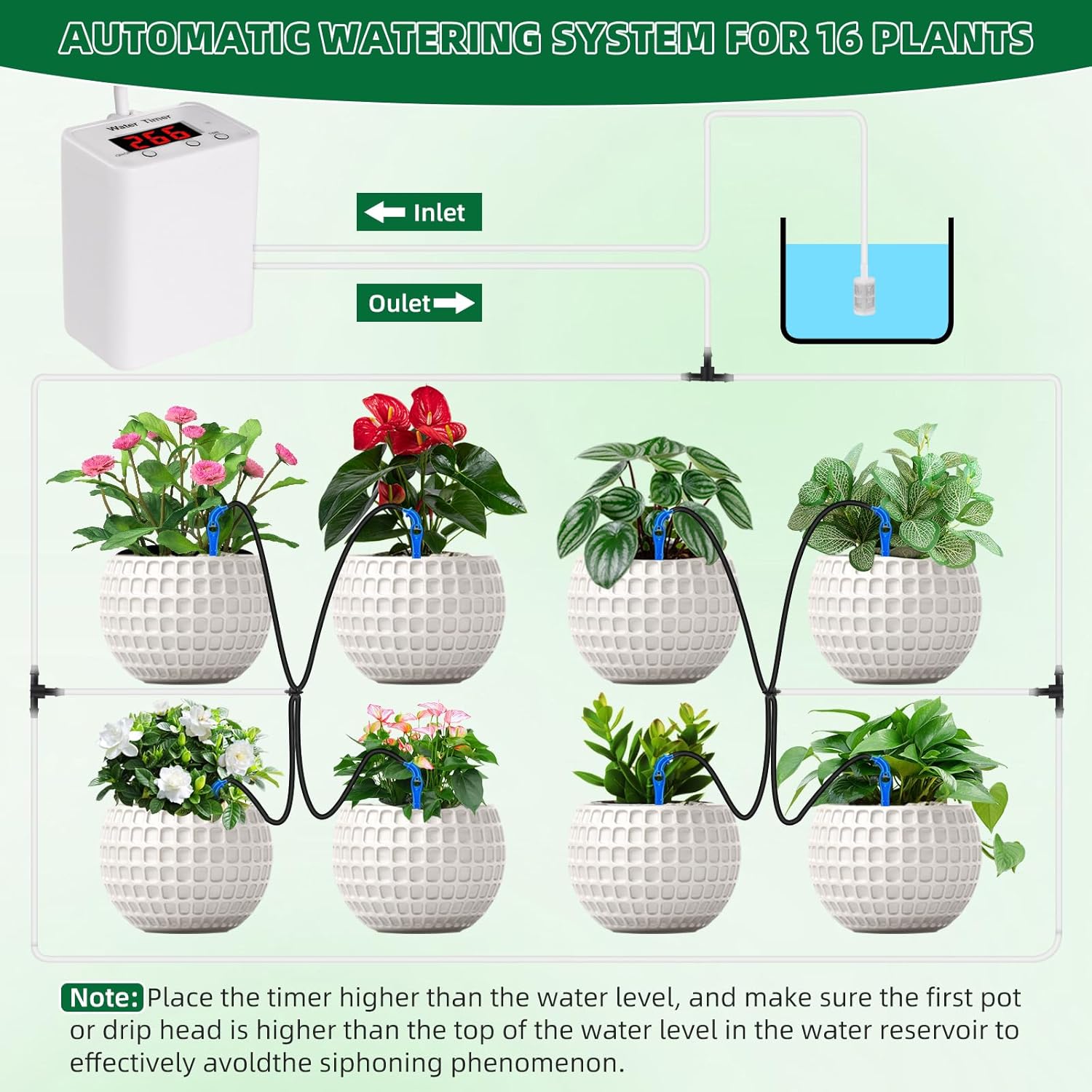 • Kapazität für 16 Pflanzen: Gleichmäßige Versorgung durch 16 Tropfdüsen und T-Verbindter.