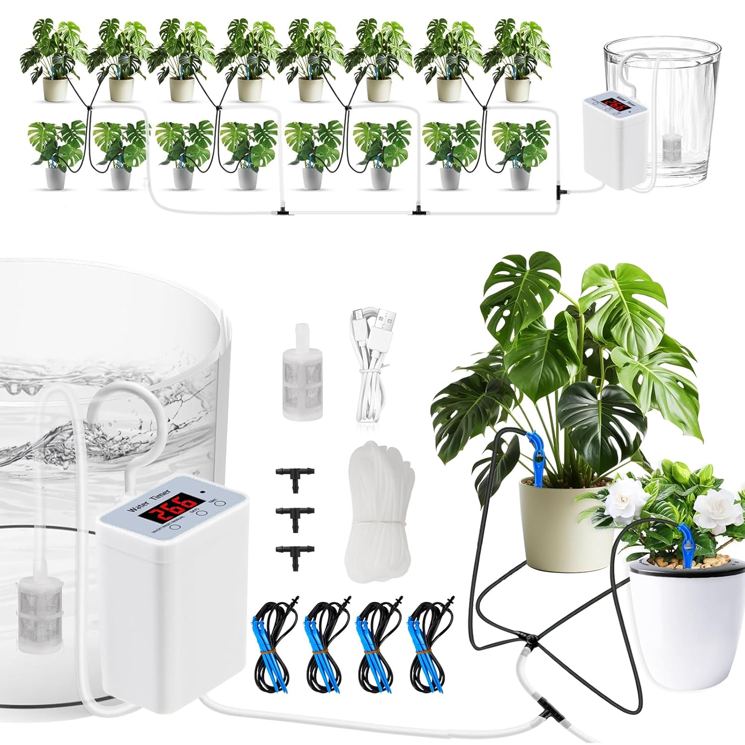 Zeitsparende Lösung für bis zu 16 Pflanzen. Mit 2000 mAh Akku, USB-C wiederaufladbar und programmierbar. Perfekt für Urlaub oder stressfreie Pflanzenpflege. Liefert gleichmäßige Wasserversorgung, sehr zuverlässig und leicht einzustellen.