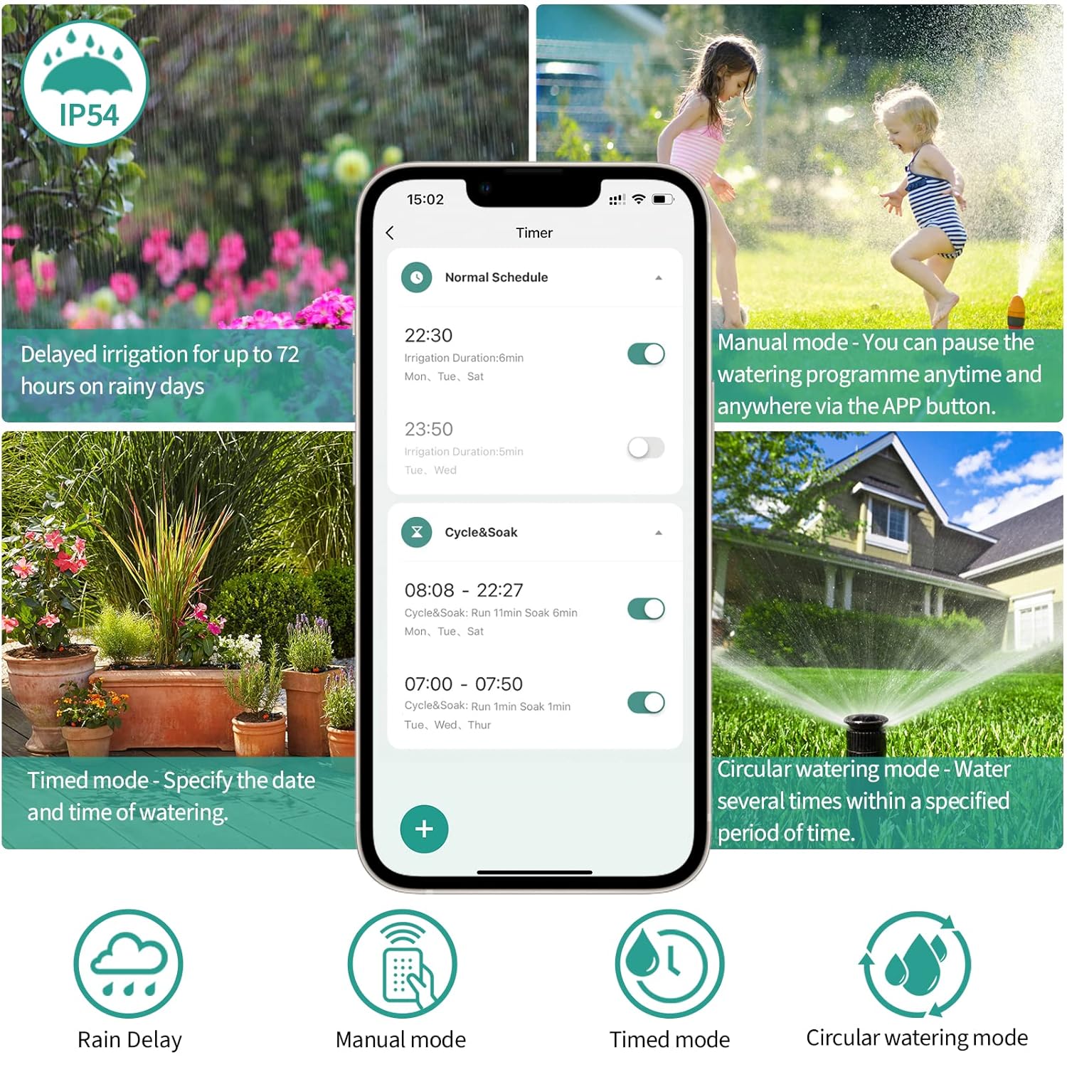 • Automatische Regen- und Schneeverzögerung: Überspringt Pläne basierend auf lokalen Wettervorhersagen, um Ressourcen zu schonen.