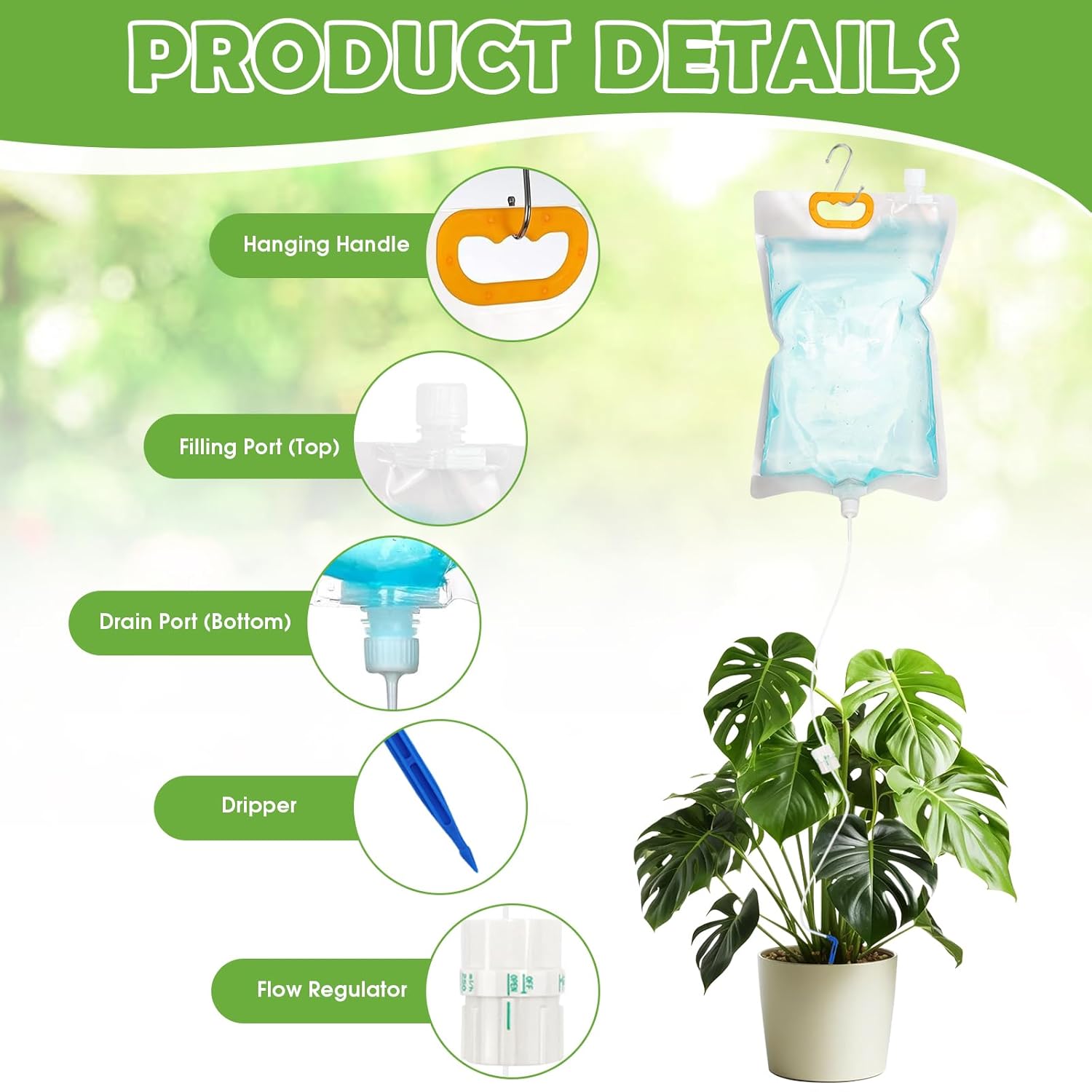 Die Kapazität von 3,5 Litern pro Beutel ist so dimensioniert, dass sie ein optimales Gleichgewicht zwischen Laufzeit und Handlichkeit bietet. Diese Größe gewährleistet eine ausreichende Wasserversorgung für die meisten mittelgroßen bis großen Töpfe über einen längeren Zeitraum, ohne dass die Aufhängung durch ein unhandliches Gewicht beeinträchtigt wird. Die Nähte und Verschlüsse sind verstärkt ausgeführt, um auch bei voller Belastung ein sicheres Halten des Wassers zu garantieren. Selbst bei versehentlichem Anstoßen zeigt sich die Robustheit des Materials.