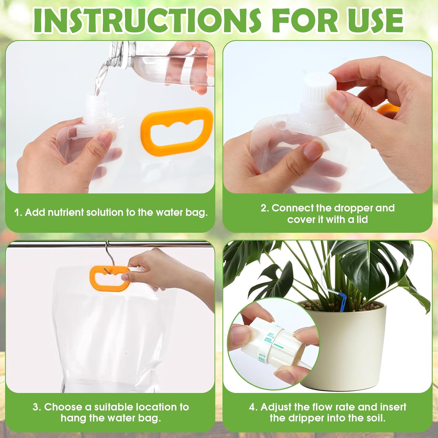 Der größte Vorteil dieses Systems ist seine mühelose Handhabung, die keine technischen Vorkenntnisse erfordert. Der gesamte Installationsvorgang ist in wenigen intuitiven Schritten erledigt, was es auch für Hobbygärtner oder technisch weniger versierte Nutzer zur idealen Lösung macht. Der Prozess beginnt mit dem Befüllen des Beutels mit frischem Leitungswasser. Anschließend wird der dünne, flexible Tropfschlauch fest mit dem Auslass des Beutels verbunden – ein simpler, aber sicherer Steckmechanismus verhindert ein unbeabsichtigtes Lösen.