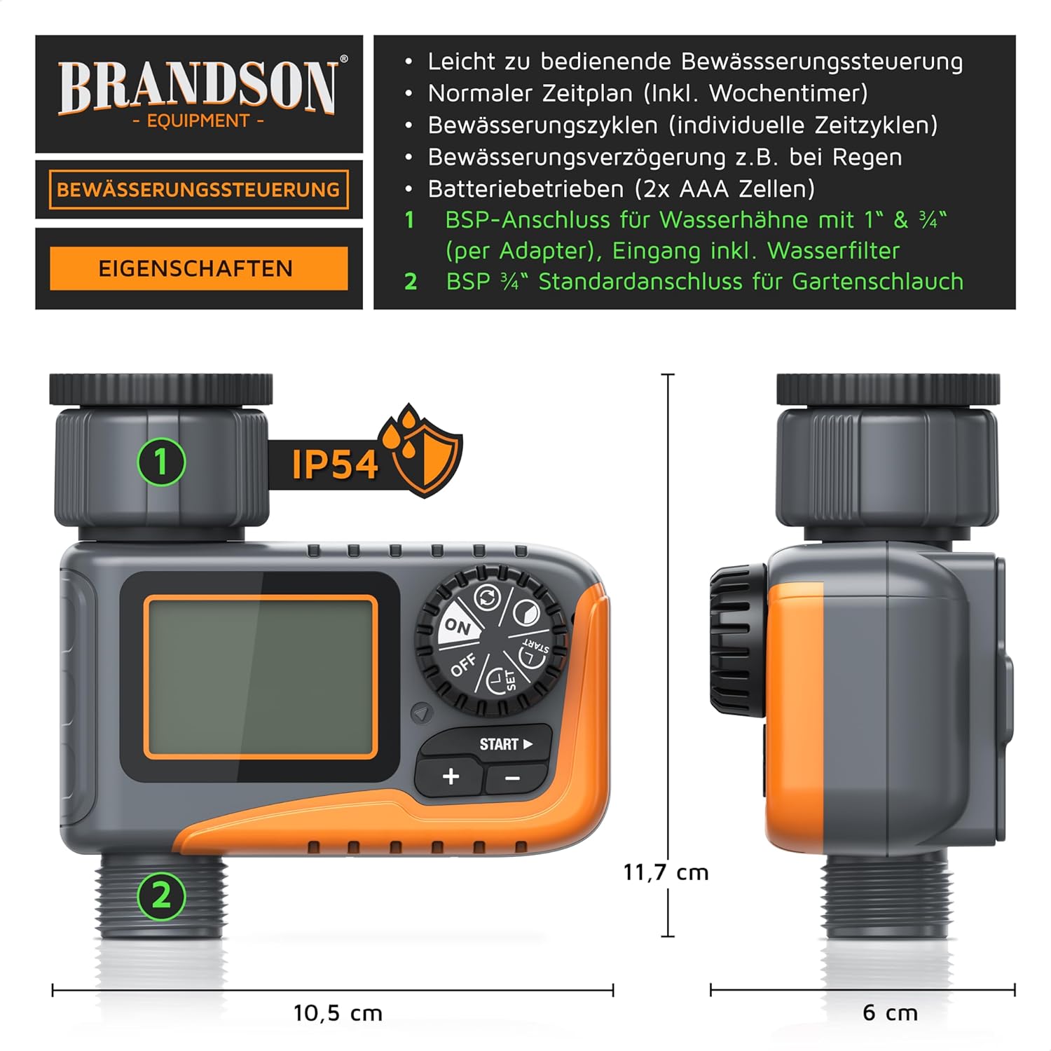 Brandson Digitaler Bewässerungsregler mit Display – Intelligente Bewässerung für Balkon, Terrasse und Garten