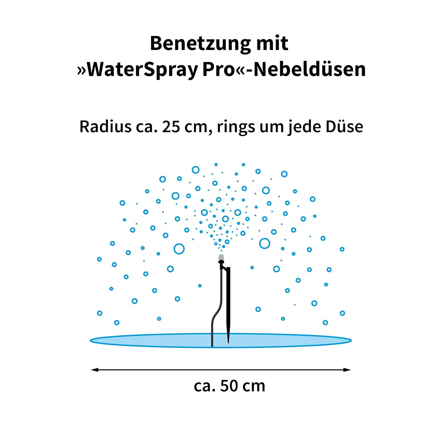 - 20 Nebelstrahler-Düsen auf Bodenspitzen für präzise, gleichmäßige Verteilung