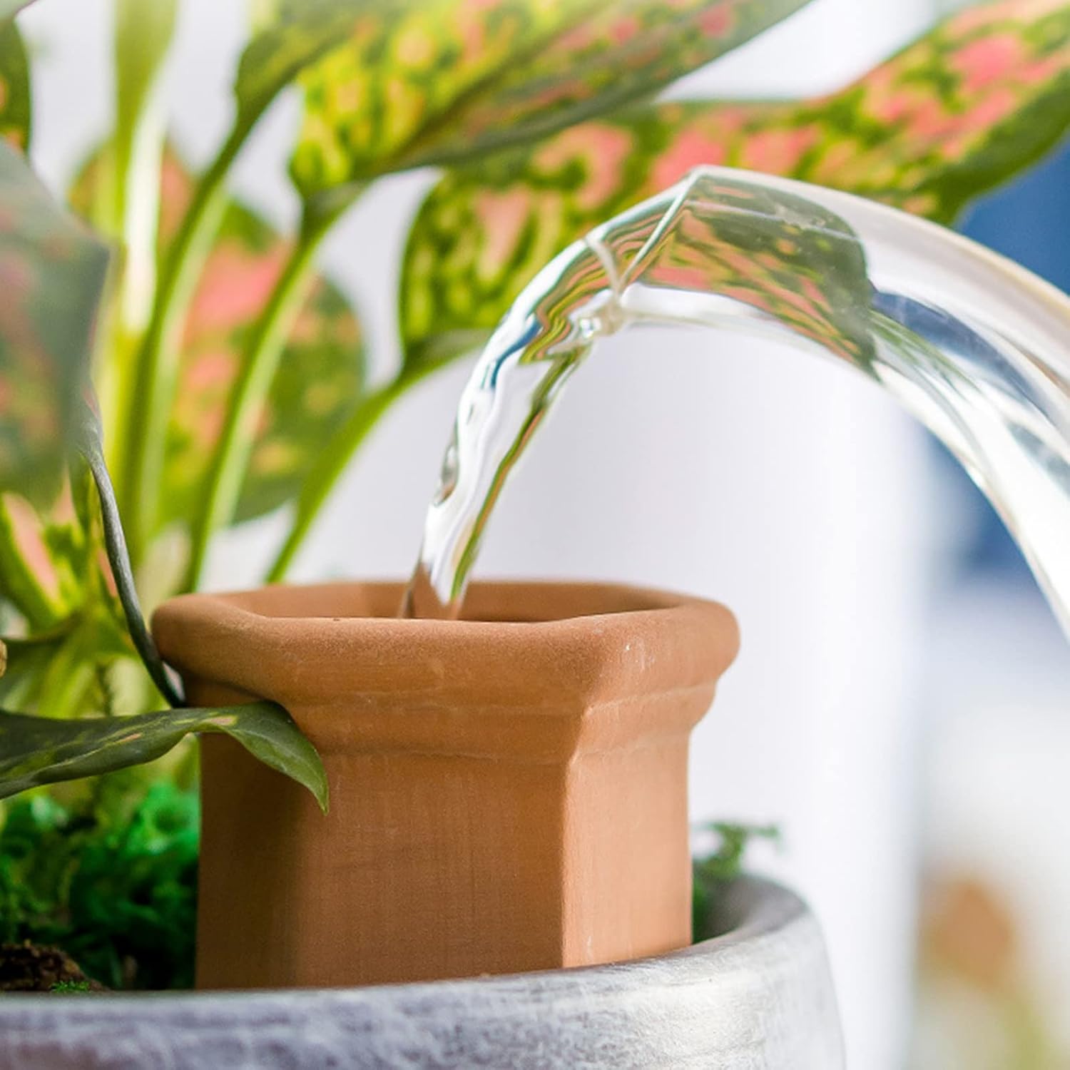Technisch getrieben durch Wasserdruck, ohne elektrische Komponenten, eliminiert es Gefahren wie Kurzschlüsse oder Batterieunfälle – kein Risiko in feuchten Umgebungen. Die stabile Konusform verhindert Umkippen, was besonders in Haushalten mit aktiven Kindern relevant ist. Zudem ist der Ton ungiftig und biologisch abbaubar, sodass versehentliche Berührungen harmlos bleiben.
