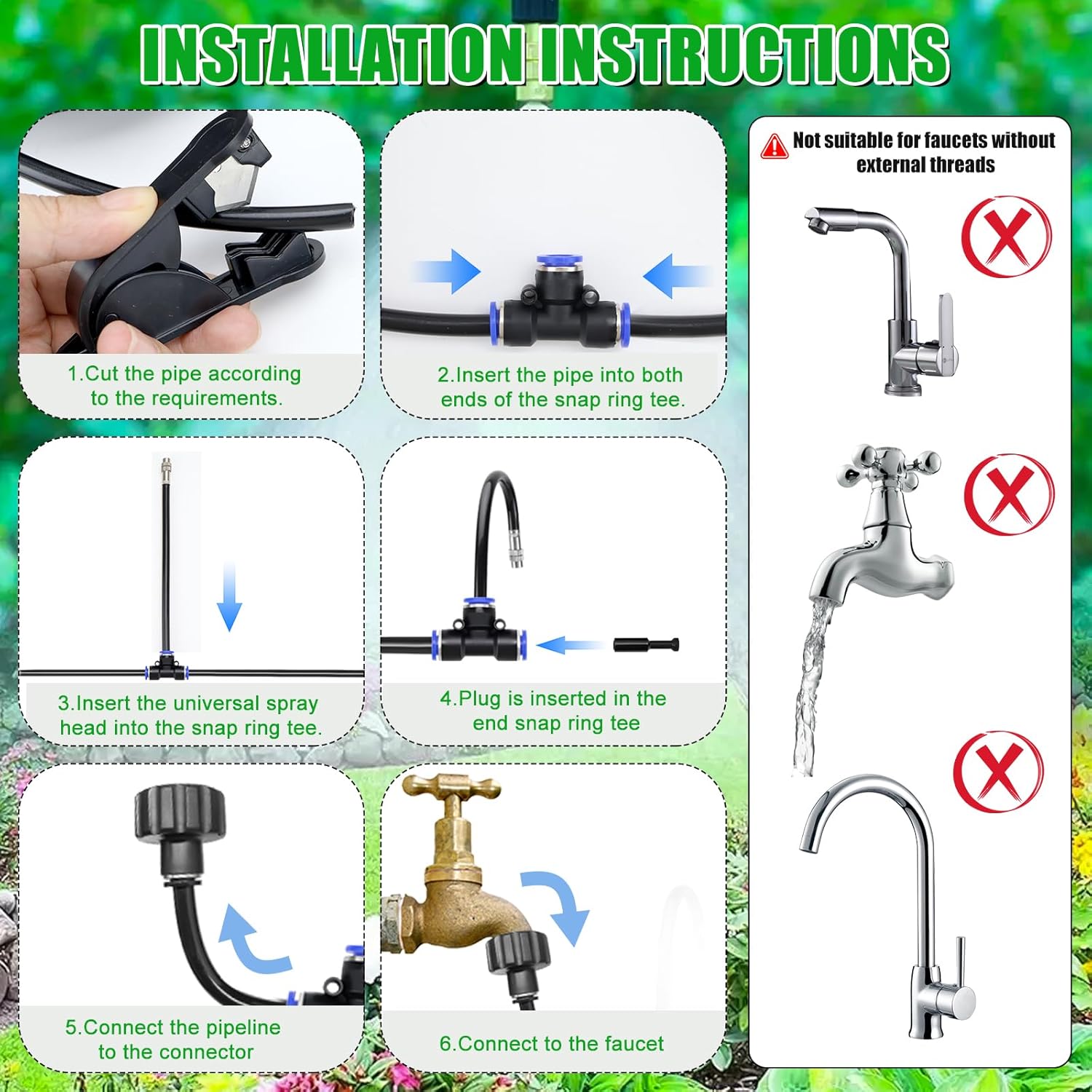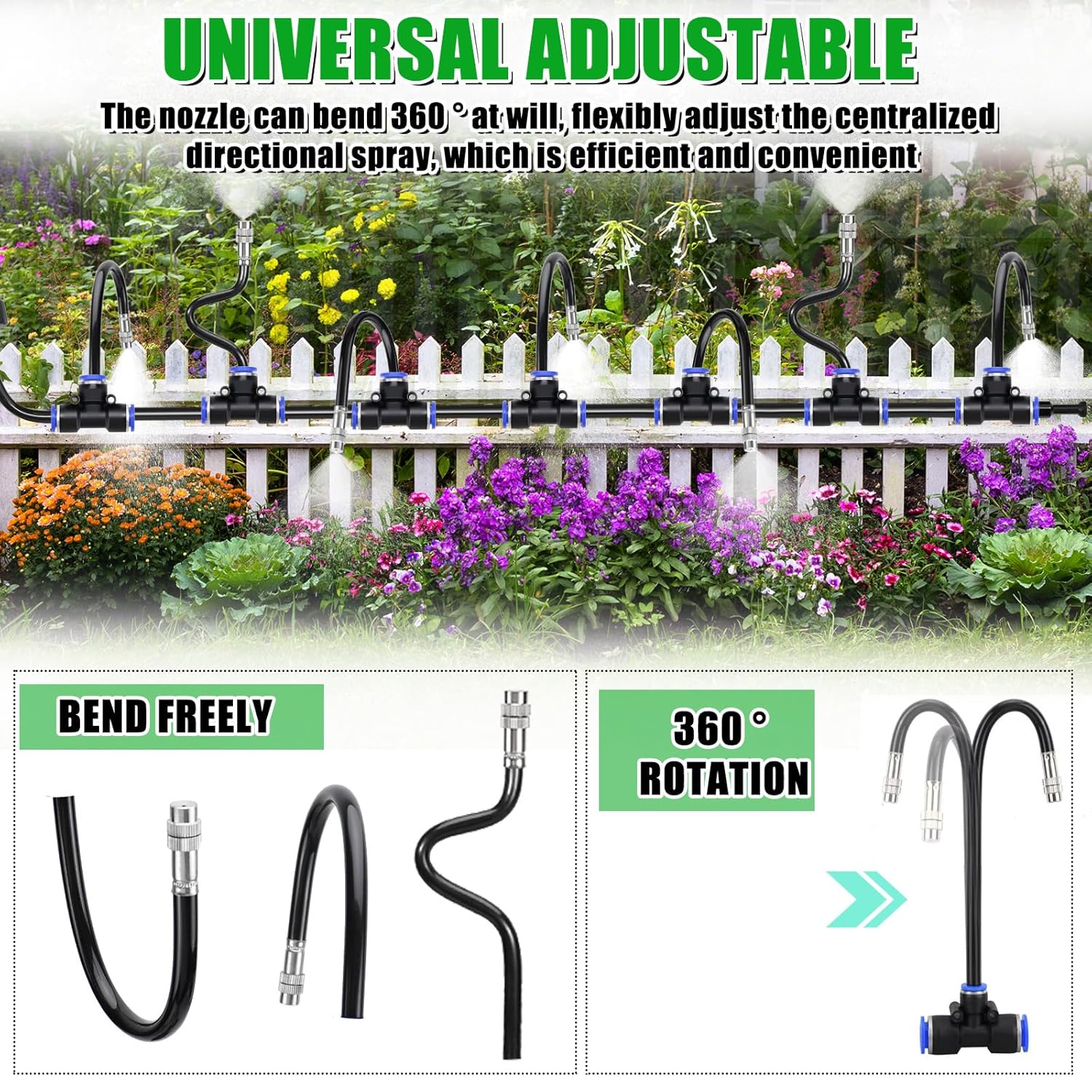 • Individuell ausrichtbare Sprühdüsen: Der flexible Metallschlauch an jeder Düse ermöglicht eine präzise 360-Grad-Ausrichtung für eine maßgeschneiderte Bewässerung.