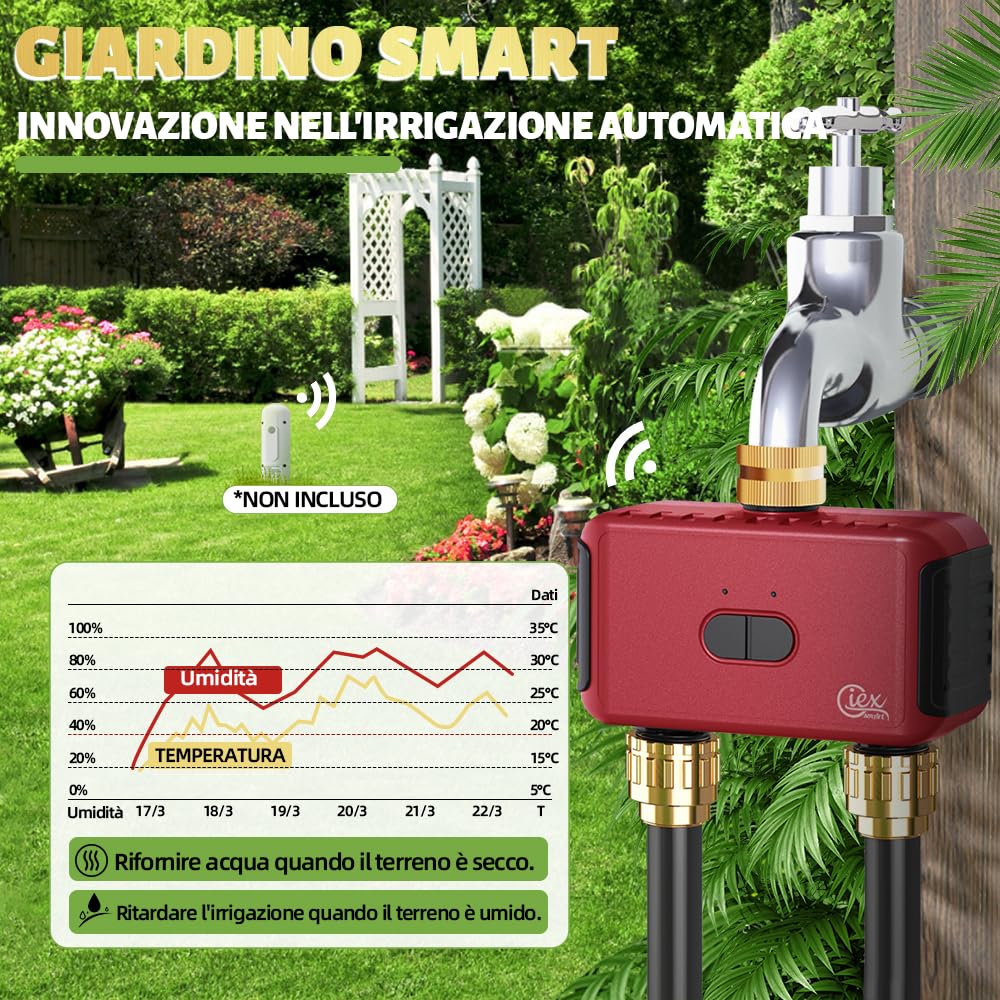 Mit dem GIEX WI-FI 2-Zone Irrigation Timer investieren Sie in einen Partner, der Ihren Garten zum Herzen Ihres Zuhauses macht. Er verbindet Technik mit Natur, schafft Momente der Freude und lädt zu unvergesslichen Familienzeiten ein. Bestellen Sie jetzt und erleben Sie den Unterschied.