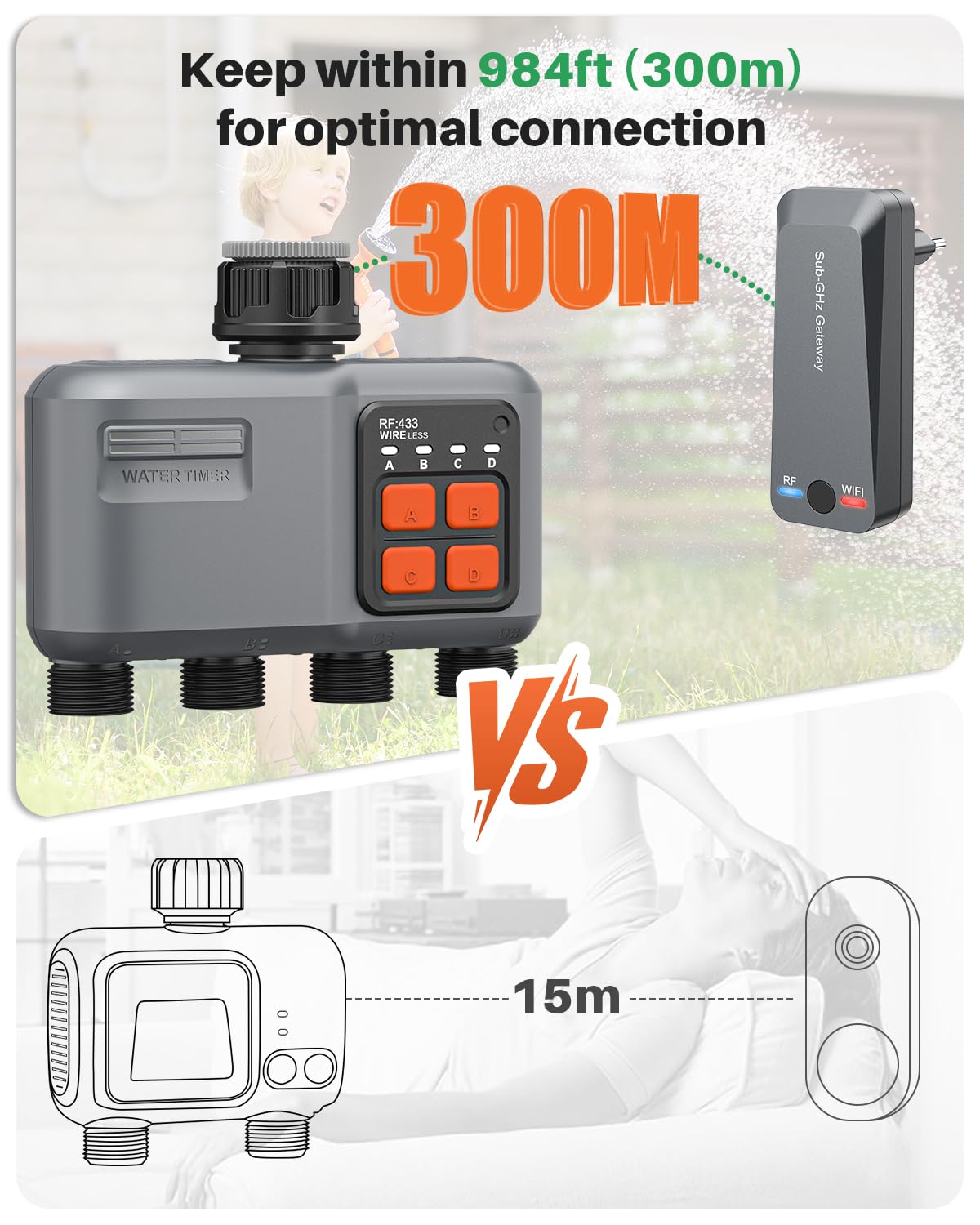 johgee Bewässerungscomputer WLAN mit 4 Ausgängen und 300 m RF-Technologie: Der smarte Begleiter für Ihren perfekten Garten