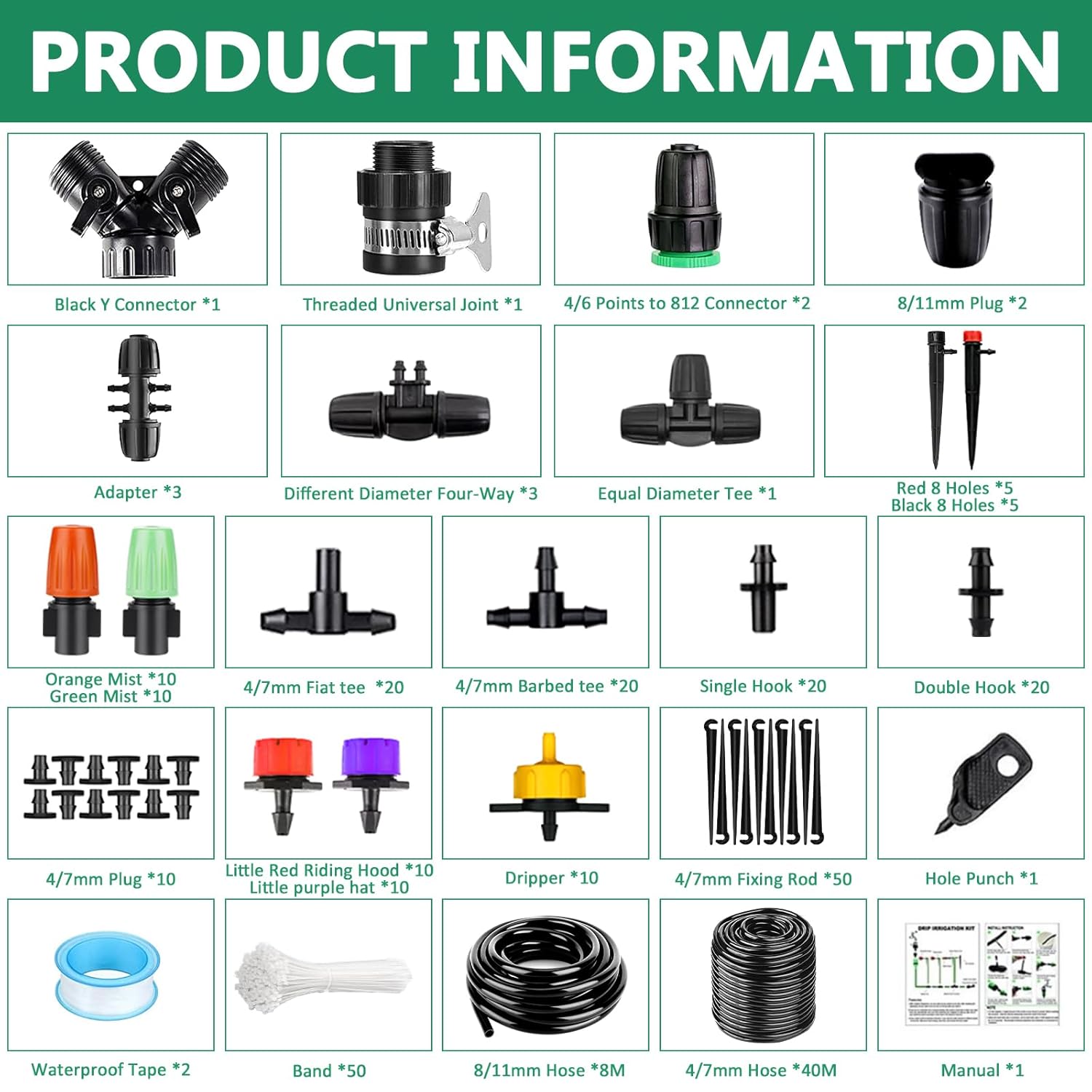 Dieses umfassende Kit verbindet Innovation mit Benutzerfreundlichkeit und positioniert sich als hochwertige Alternative zu herkömmlichen Methoden. Mit einer Gesamtlänge von 48 Metern an Schläuchen, darunter eine 40-Meter-Hauptleitung und eine 8-Meter-Verteilerleitung, deckt es große Flächen ab, ohne Kompromisse bei der Qualität einzugehen. Ob für den Hausgarten oder den Balkon: Es verwandelt tägliche Pflege in ein harmonisches Ritual, das Freude an der Natur weckt.