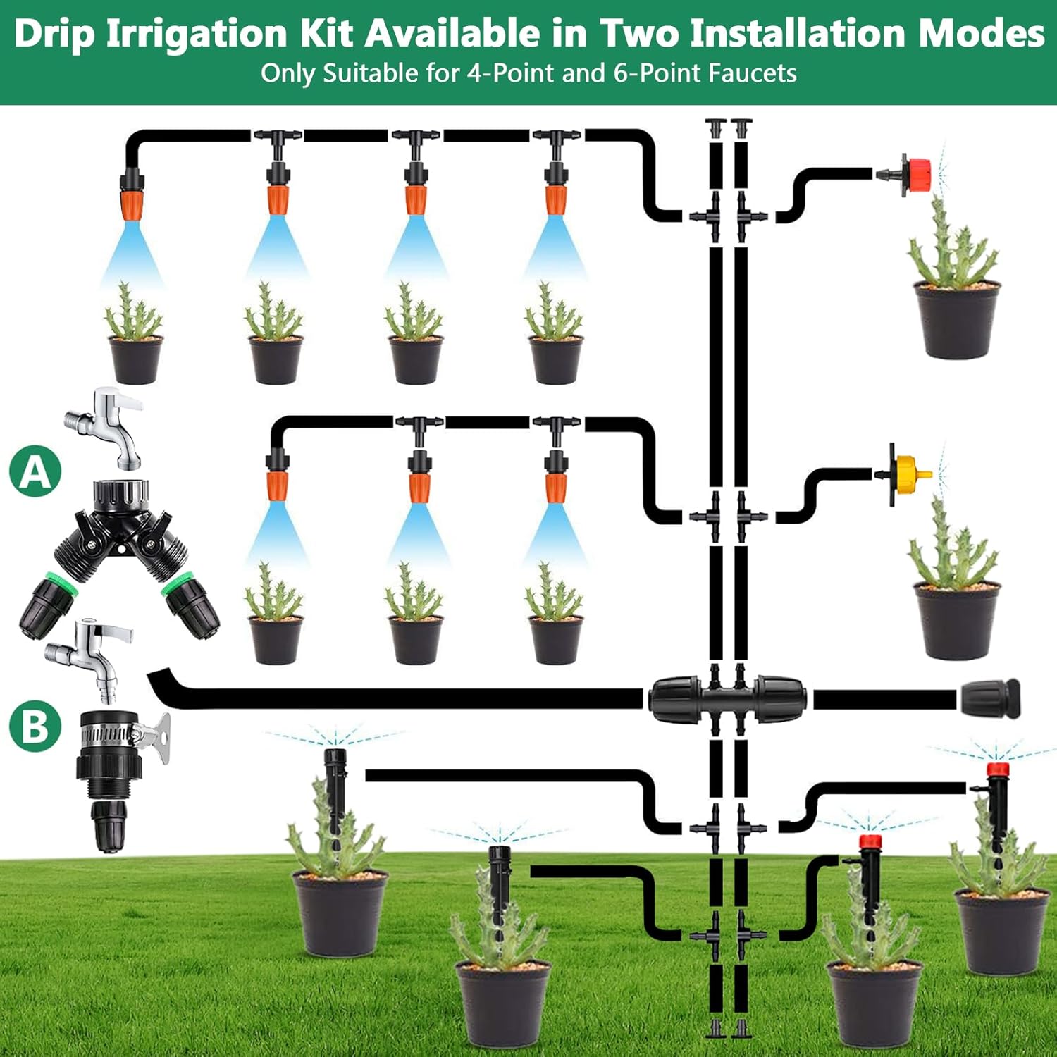 - Vielseitige Sprühertypen: Drei Varianten für Nebel, Tropfen oder Strahl, je nach Pflanzenbedarf.