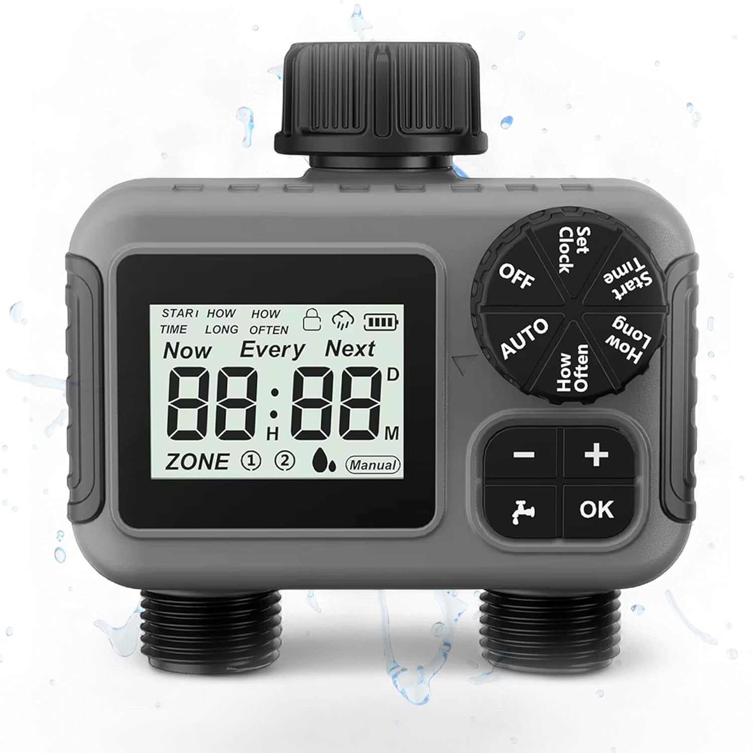 Der Timer bietet eine robuste Speicherkapazität für bis zu zwei unabhängige Programme, die Bewässerungszeiten von 1 Minute bis 5 Stunden 59 Minuten und Intervalle von 1 Stunde bis 7 Tagen speichern. Diese Kapazität erlaubt detaillierte Planung, wie wöchentliche Zyklen für Rasen und tägliche für Drip-Systeme, ohne dass Einstellungen verloren gehen. Für Familien ist das praktisch: Einmal programmiert, läuft es wochenlang autonom und passt sich dem Lebensrhythmus an.