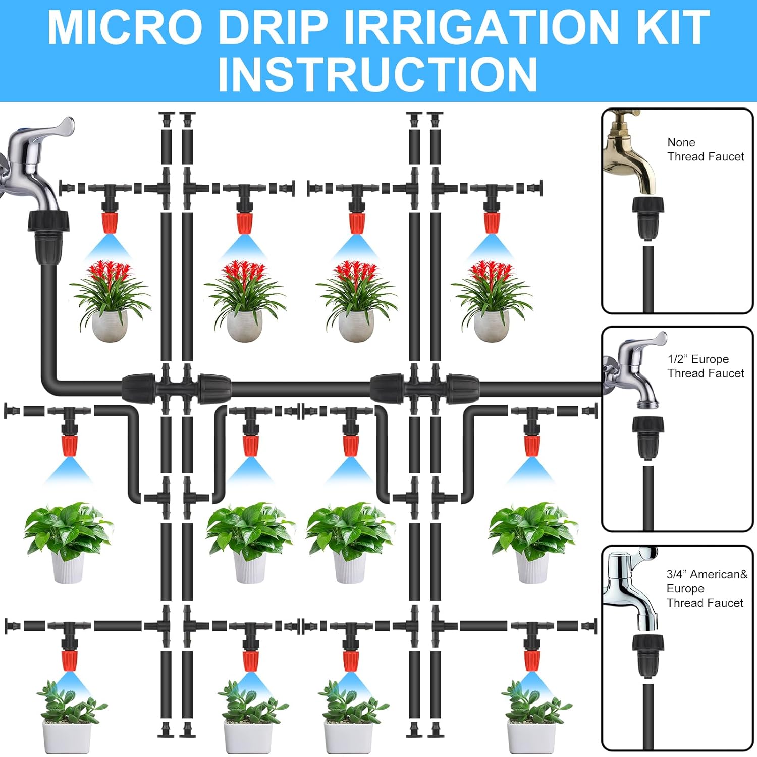 - Dripper und Nebeldüsen für präzise Bewässerung