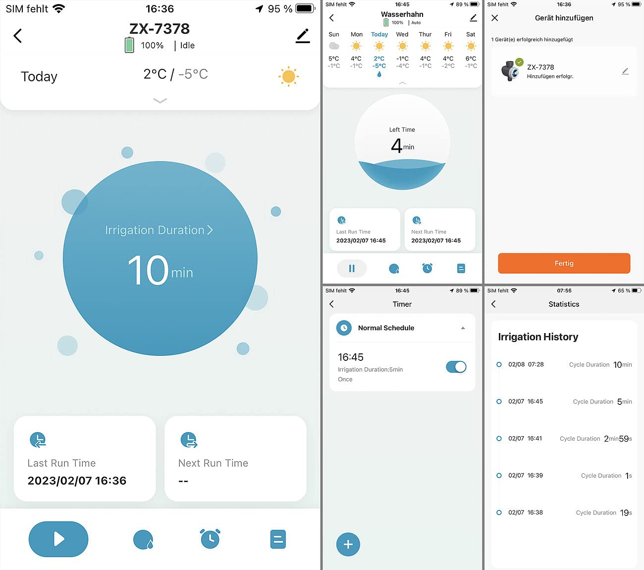 - Manuelle Pausen und Anpassungen basierend auf Wetterdatenvergleich in der App