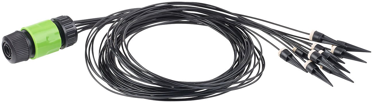 - 10 Schläuche mit integrierten Bewässerungsdüsen