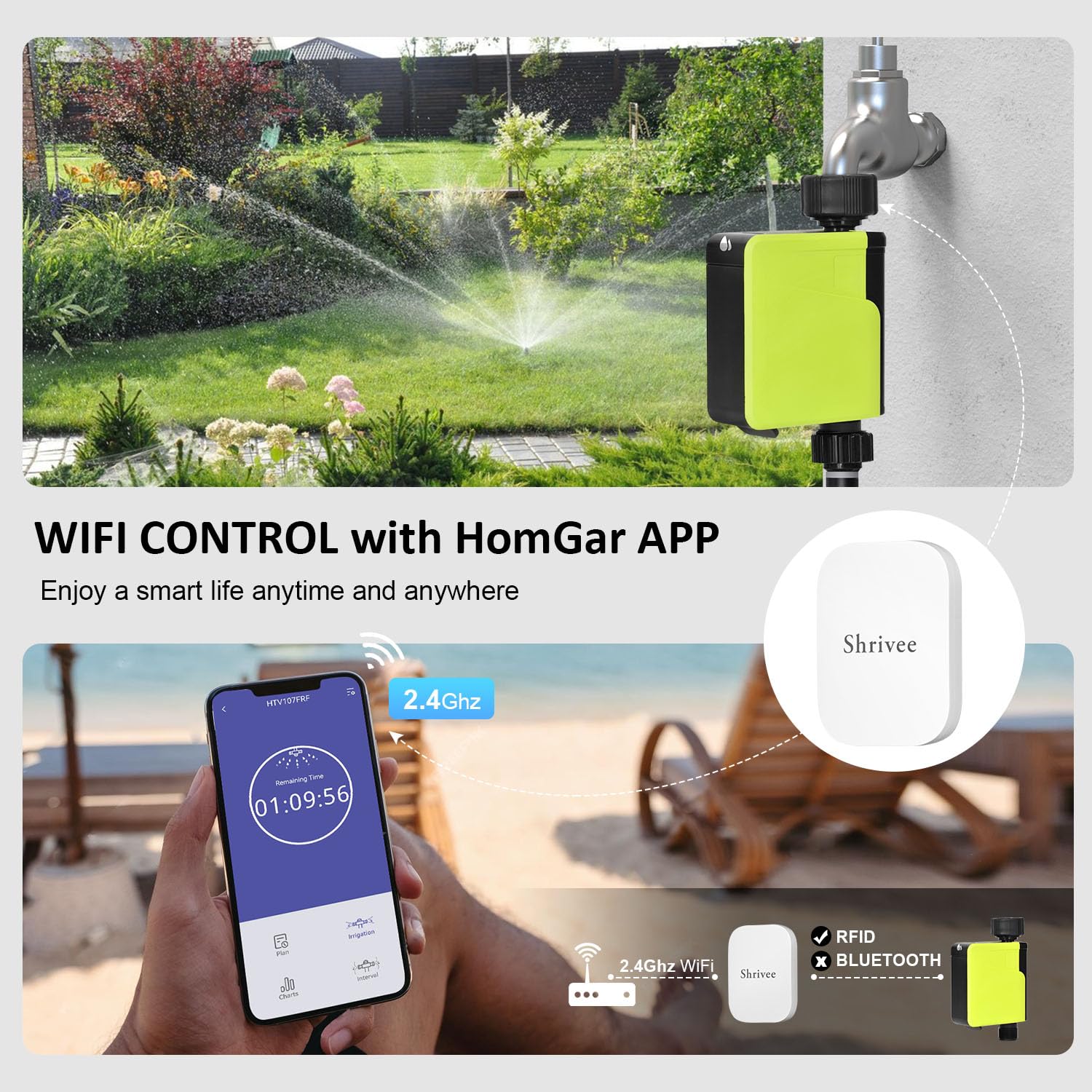 Entdecken Sie den Shrivee Watering Computer – den intelligenten, automatischen Bewässerungs-Timer, der Ihren Garten in ein grünes Paradies verwandelt. Als Premium-Lösung für moderne Gärtner kombiniert dieses WiFi-fähige Gerät fortschrittliche Technologie mit unkomplizierter Bedienung, um Ihnen Zeit zu sparen und Ressourcen zu schonen. Stellen Sie sich vor, wie Ihr Rasen präzise bewässert wird, während Sie unterwegs sind – ohne Stress, ohne Verschwendung. Der Shrivee Watering Computer ist mehr als ein Timer; er ist Ihr zuverlässiger Partner für nachhaltiges Gärtnern, der nahtlos in den Alltag einer Familie passt.