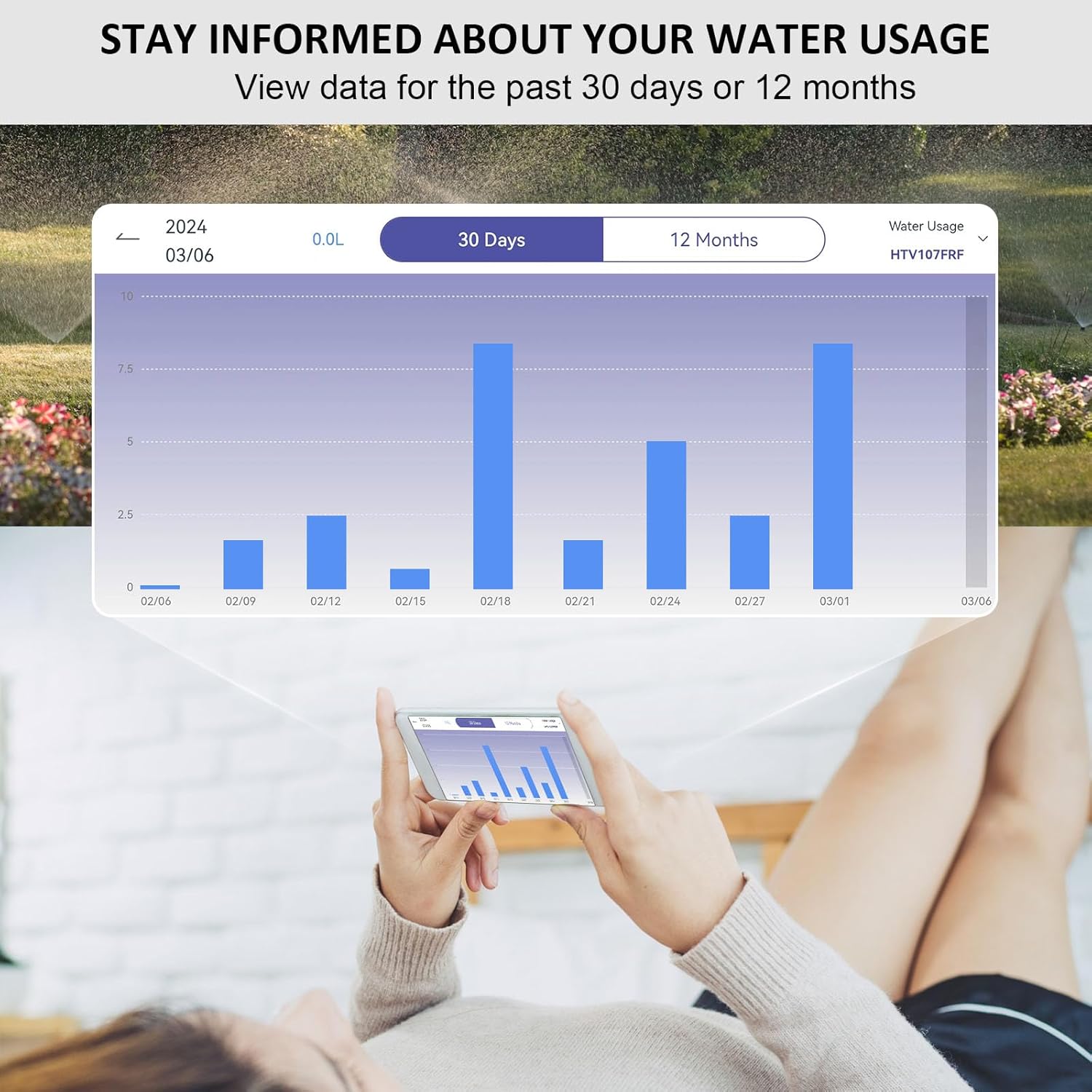 - Integrierter Flow-Meter: Präzise Messung des Wasserverbrauchs mit App-Tracking über 30 Tage oder 12 Monate.