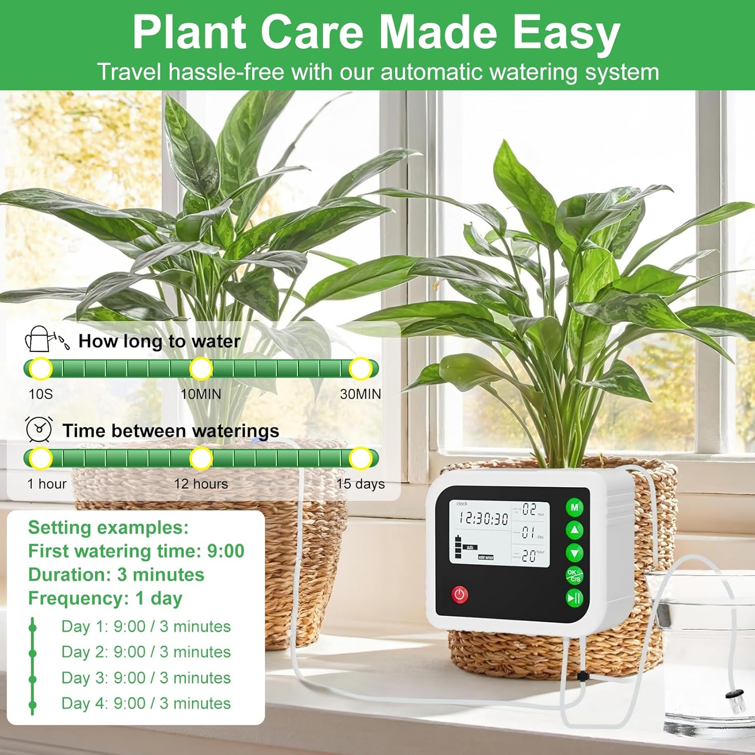 - Leistungsstarke Pumpe mit 400 ml/min Verteilungsrate für gleichmäßige Bewässerung von bis zu 15 Topfpflanzen