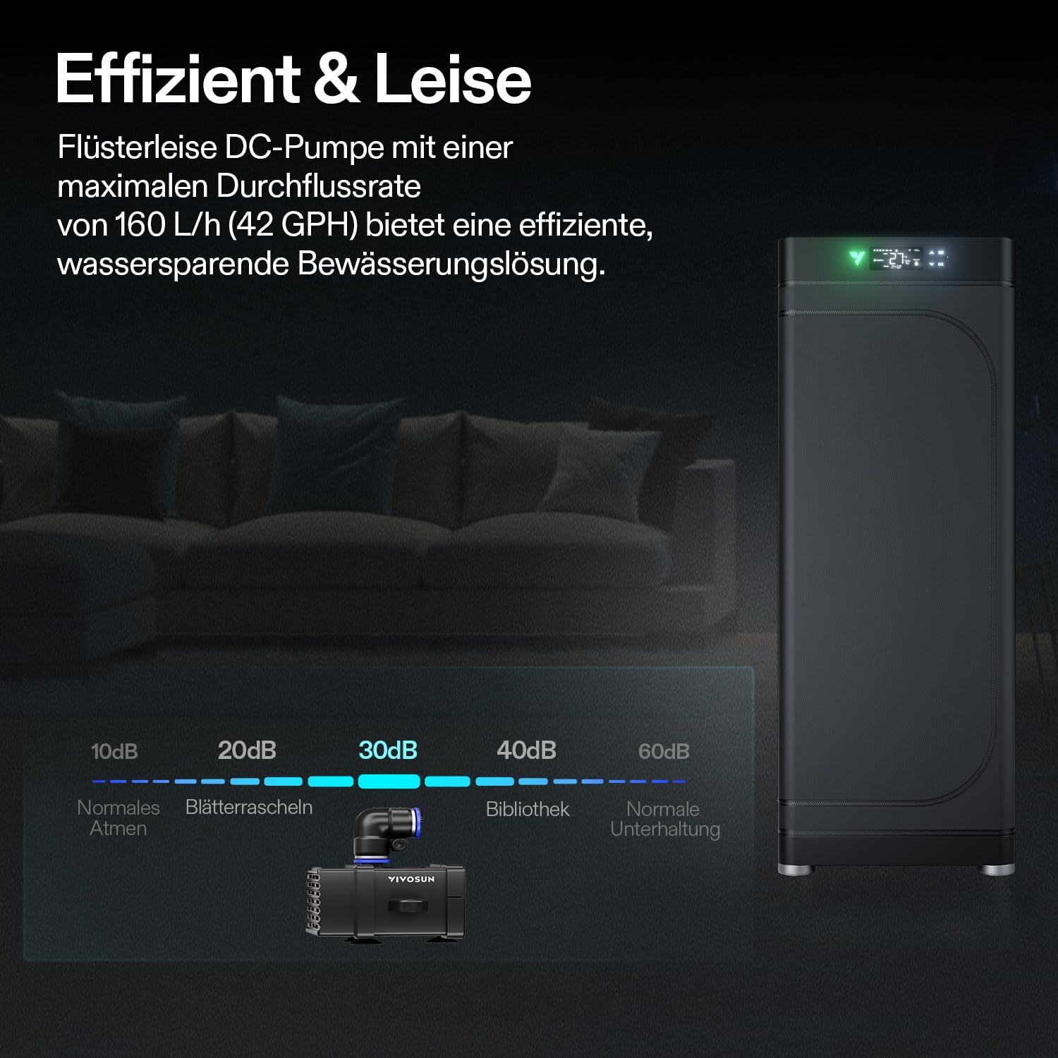 - Speziell für VIVOSUN VGrow Smart Grow Box entwickelt, mit App-Programmierung für Zeit, Frequenz und Flussrate