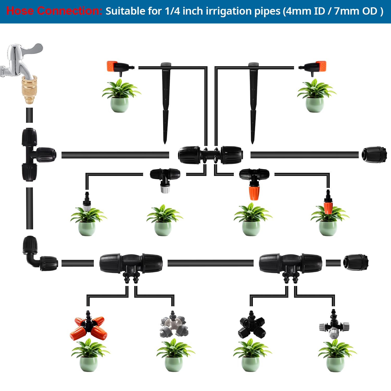 • Vielseitige Kompatibilität: Passt zu 4/7-mm-Schläuchen mit 1/4-Zoll-Verbindung für einfache Integration in bestehende Systeme.