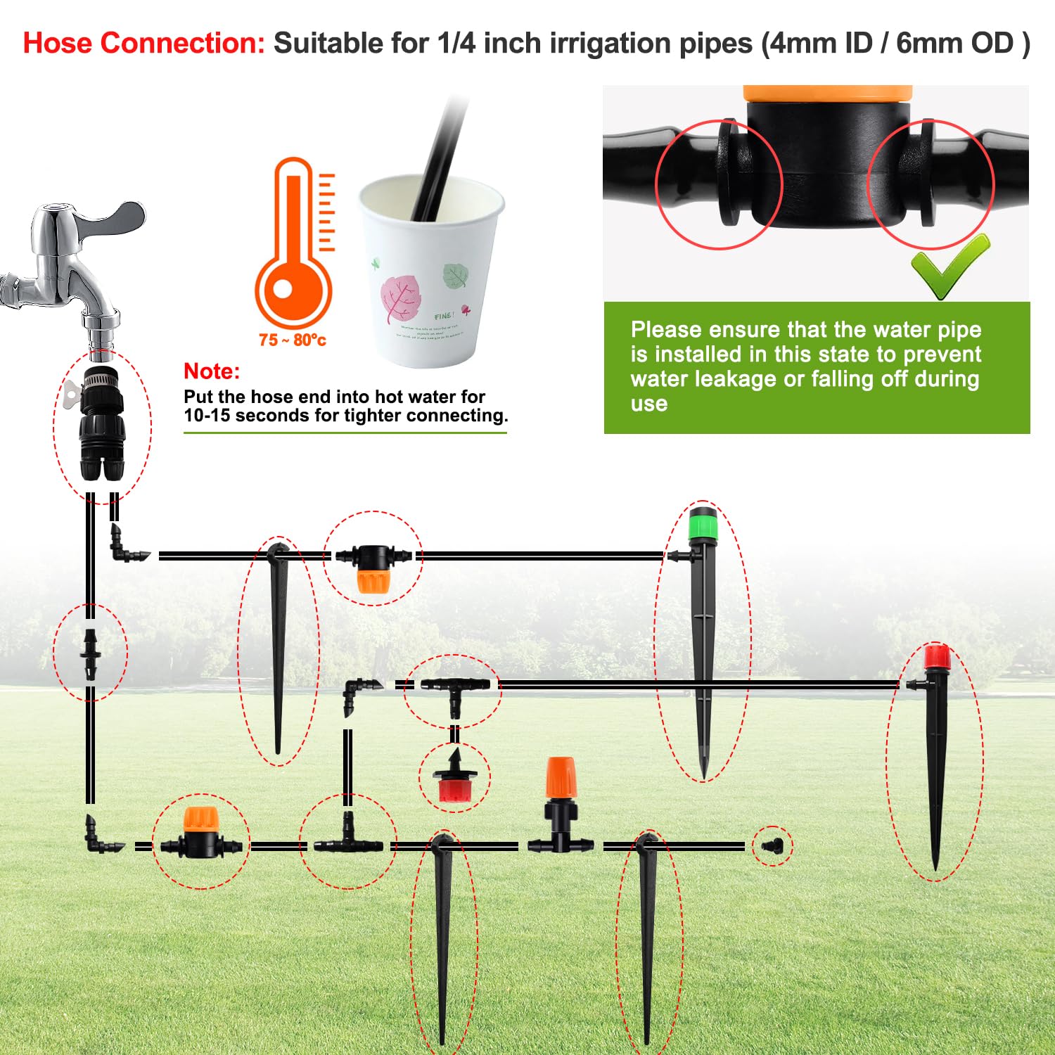 - Umfassender Umfang: 40 Tropfspender in drei Größen (4/6 mm) für feine bis mittlere Verteilung, passend zu allen Gartentypen.