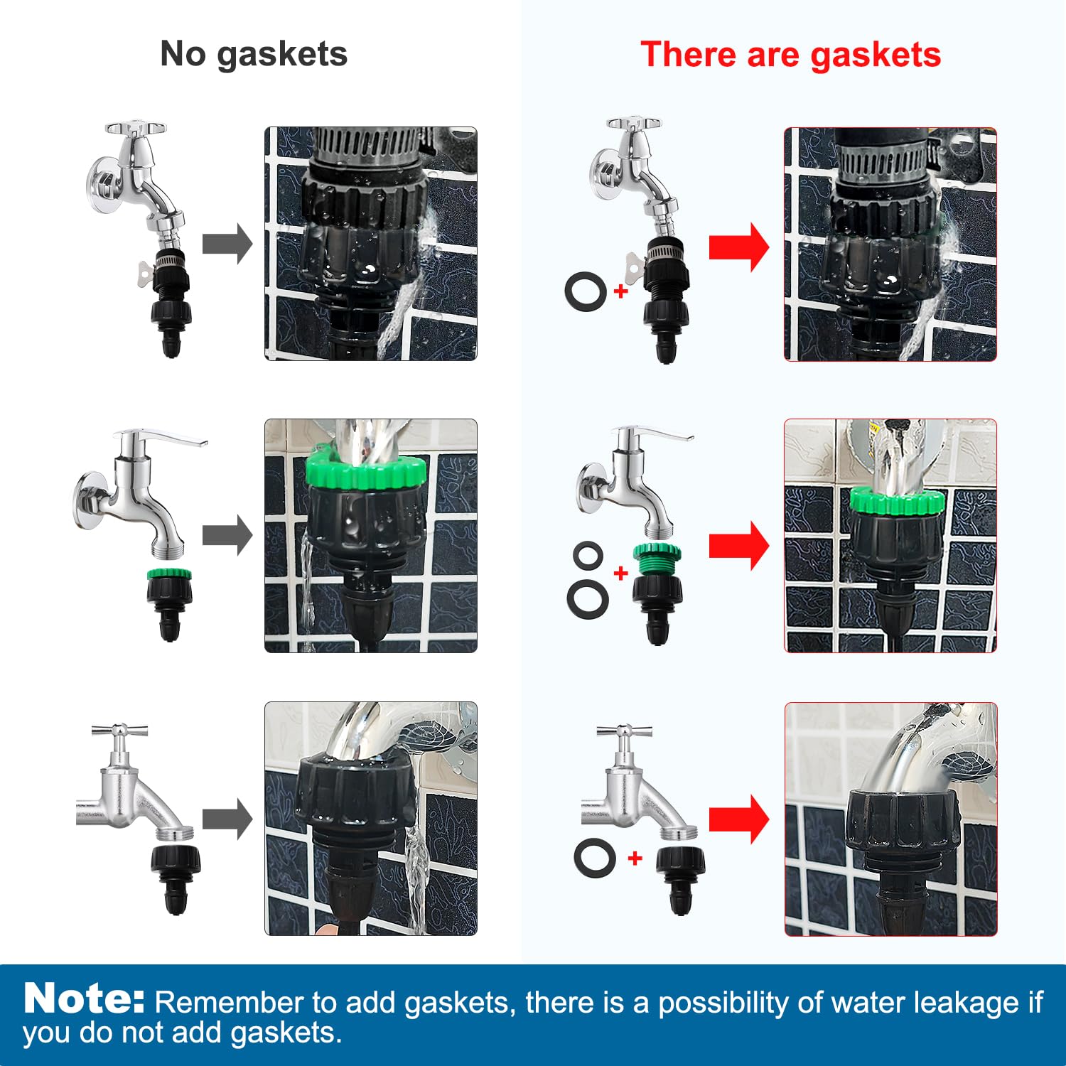 - Vielseitige Anschlüsse: Drei Hahnadapter mit vier Gummidichtungen sorgen für kompatible, leckagefreie Integration in bestehende Systeme.