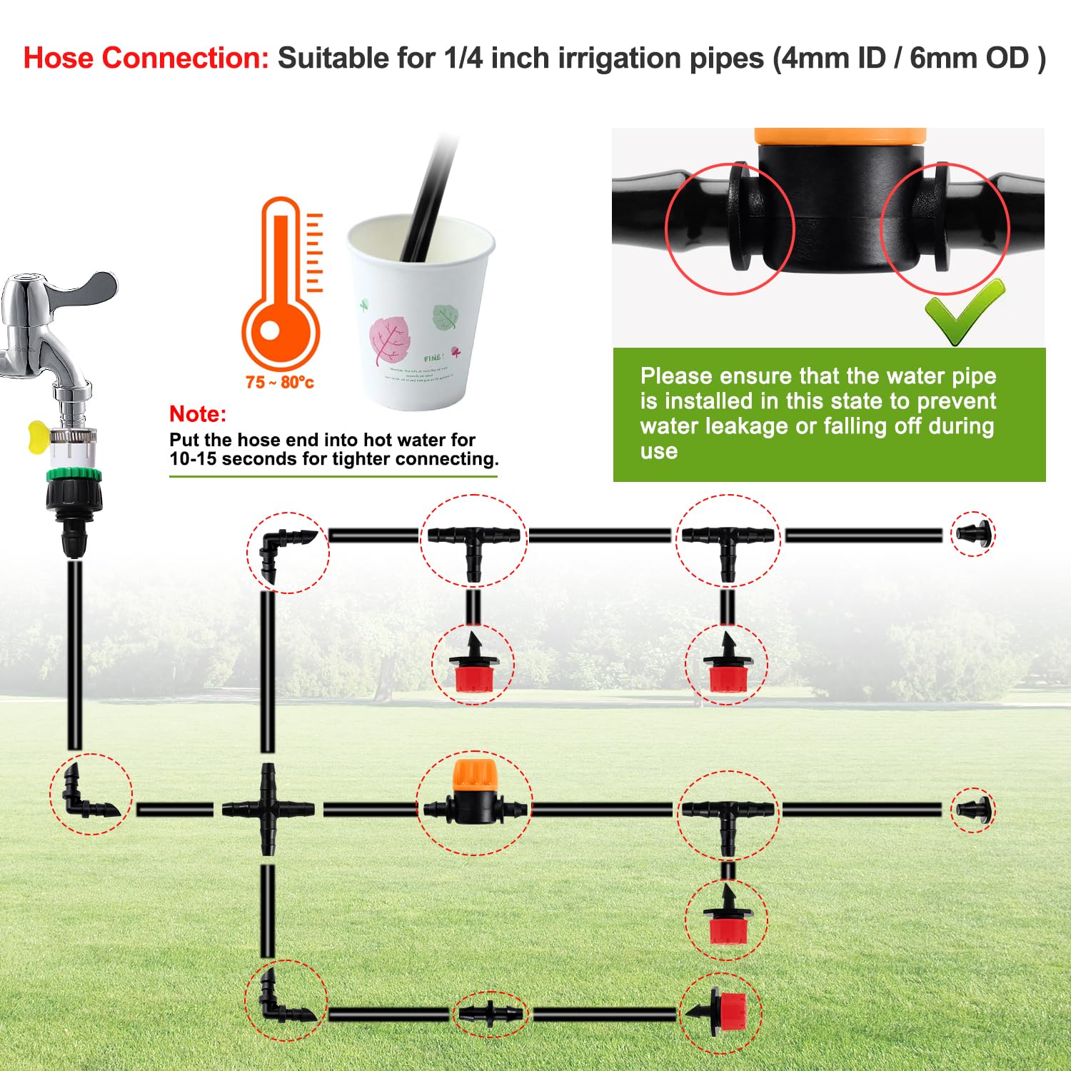 Sicherheit steht im Vordergrund, da das Kit Leckagen durch seine dichten Barb-Anschlüsse verhindert, die ohne Kleber eine vakuumdichte Verbindung schaffen. Dies minimiert das Risiko von Wasseransammlungen, die Schimmel oder Insekten anziehen könnten – entscheidend für Haushalte mit Kindern, die im Garten spielen. Die Ventile ermöglichen eine präzise Steuerung des Wasserflusses, um Überflutung zu vermeiden und Wurzelverfaulung zu verhindern.