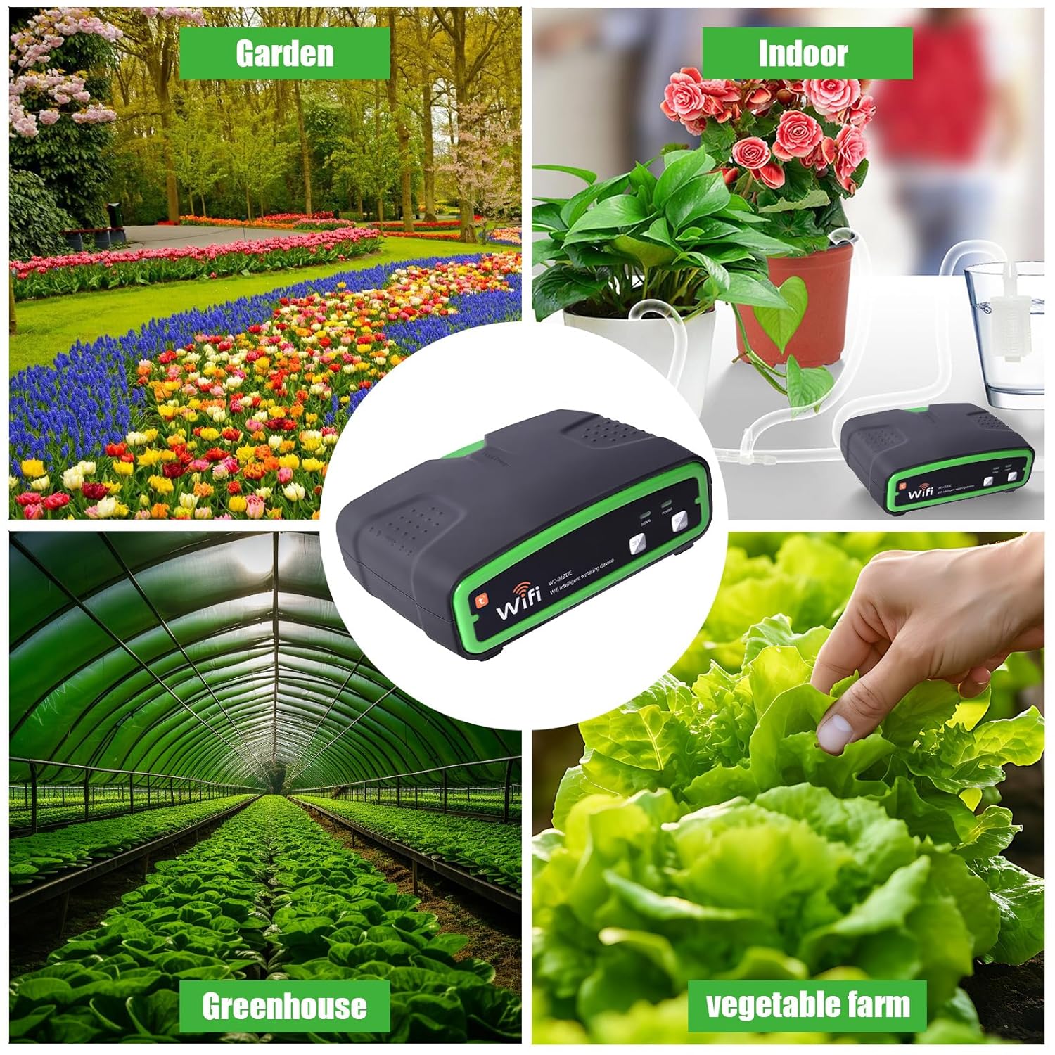 - WiFi- und App-Fernsteuerung für flexible Anpassung von Intervallen und Dauer, die Wasser spart und Pflanzen auf Reisen versorgt